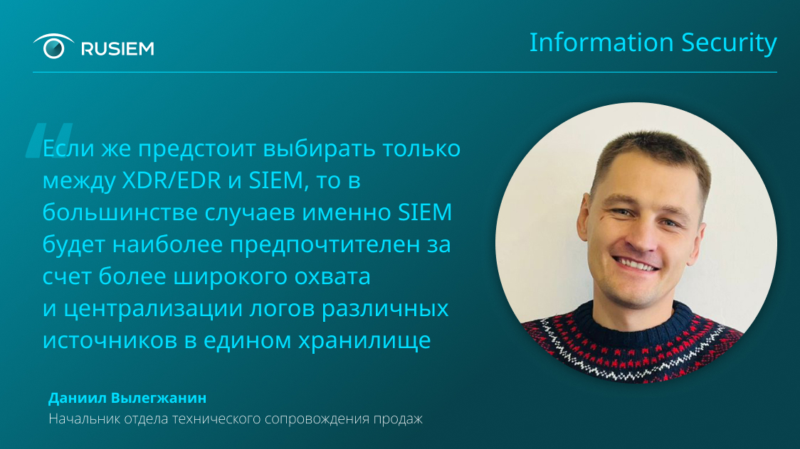 Даниил Вылегжанин, начальник отдела технического сопровождения продаж, RuSIEM